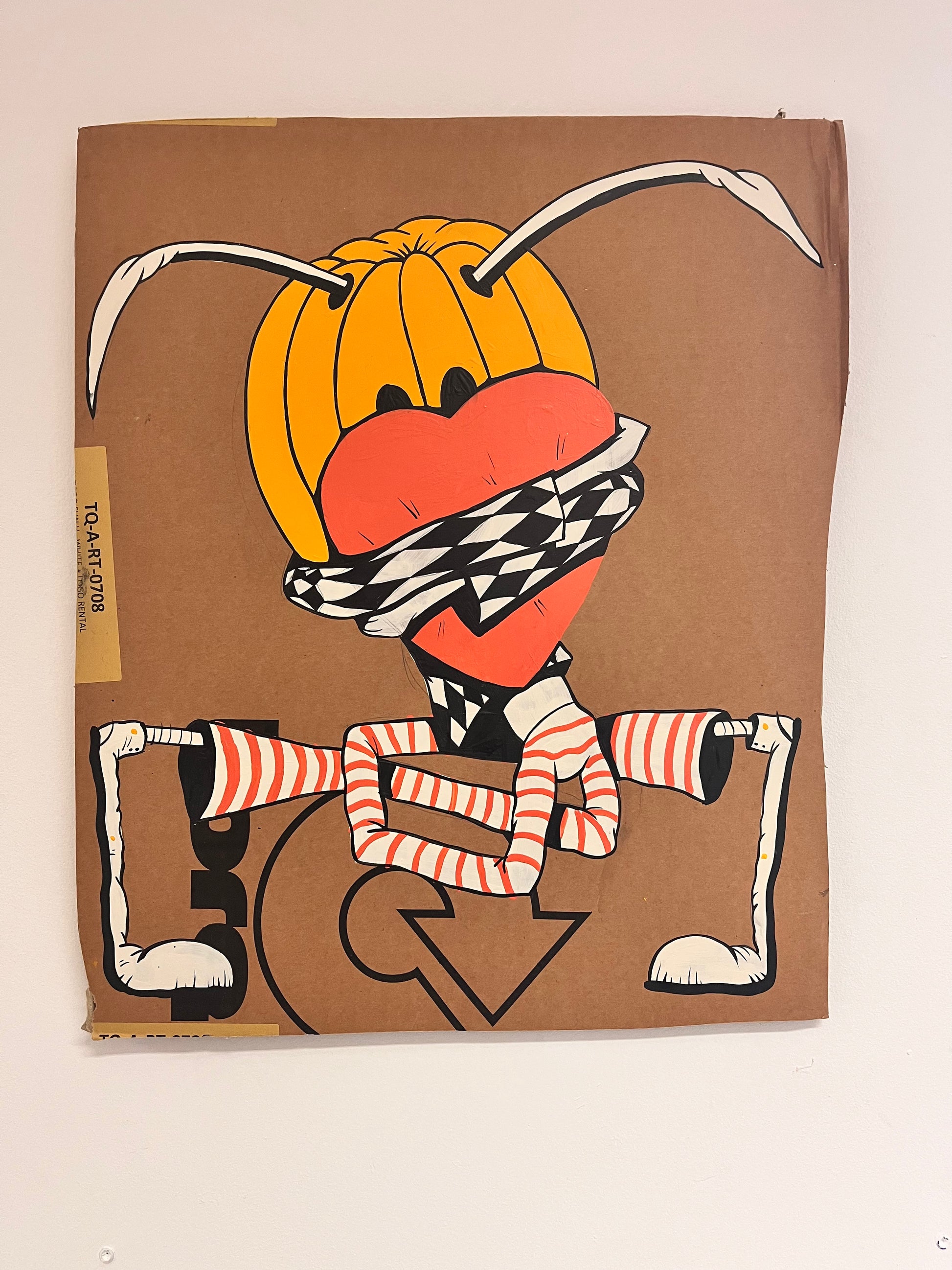 Unique hand painted figure on used cardboard.